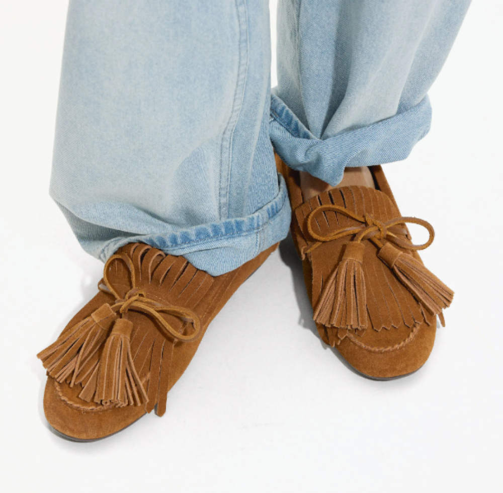 Antilop i brušena koža već su se nametnuli kao jedan od ključnih materijala sezone, i to ne samo na jaknama, torbama i tenisicama, nego i na ravnoj obući. Na mokasinkama taj materijal djeluje posebno dobro jer ublažava njihovu klasičnu, ponekad i pomalo formalnu siluetu.