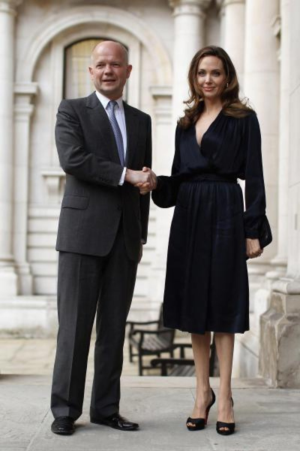 Angelina Jolie došla je s cijelom obitelji u London, gdje je podržala akciju protiv seksualnog nasilja u ratnim zonama. Pred okupljene ministre, odvjetnike, borce za ljudska prava, psihologe, forenzičare i ljekarnike stala je u elegantnoj tamnoplavoj haljini dugih rukava i dužine do koljena, s diskretnim dekolteom oko vrata.
