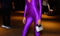 Moćno odijelo u krem boji s uzorkom koji se proteže i po sakou i hlačama, daje odmak klasičnom kroju, a suženi kroj hlača visokog struka dodatno naglašava njezinu vitku liniju. Izabel Goulart odabrala je odijelo s potpisom The Mannei, ispod kojeg se savršeno uklopio tek minijaturni bijeli topić.