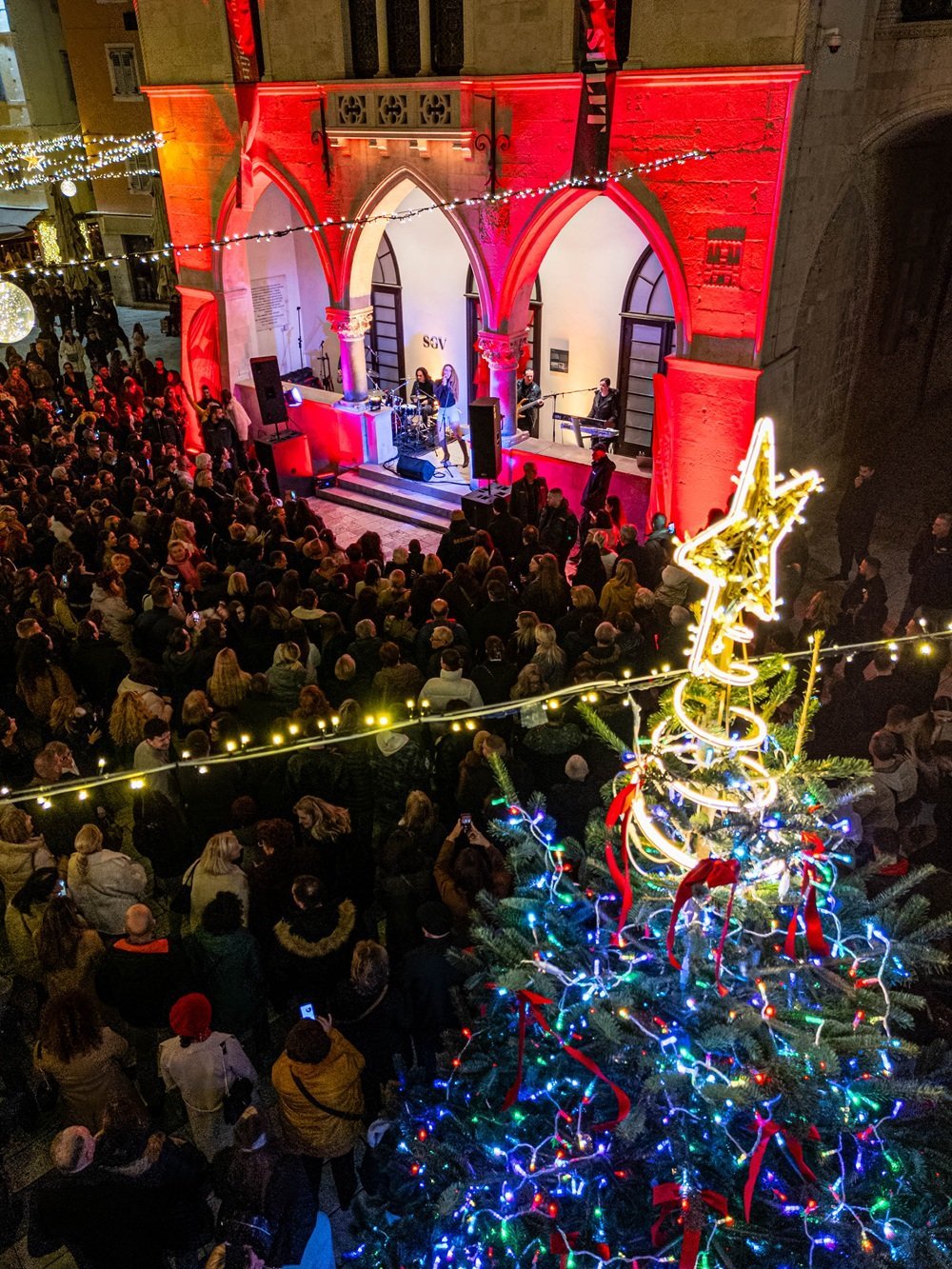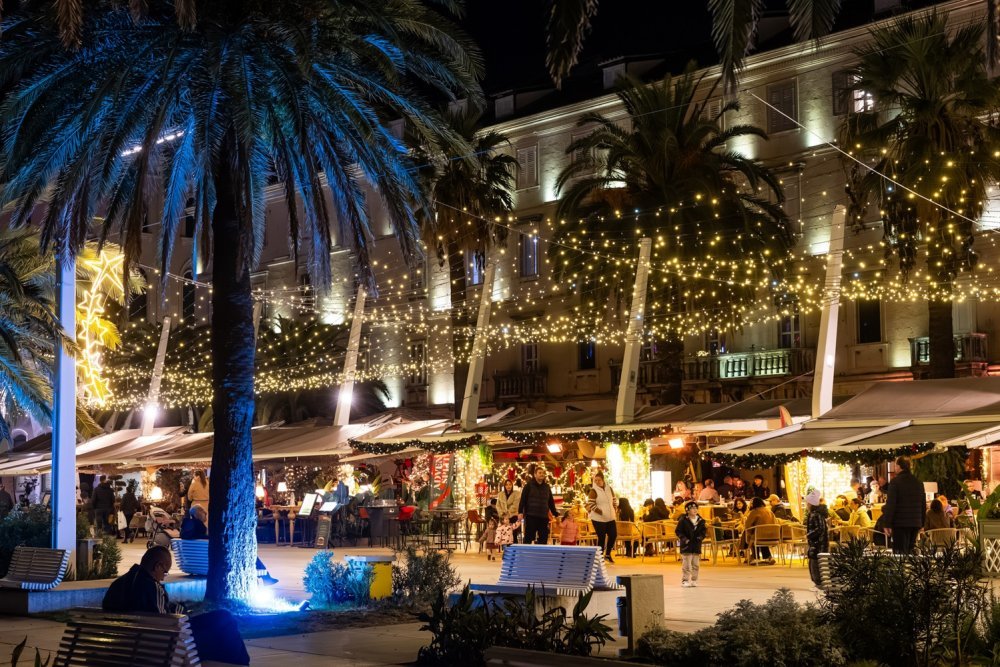 Badnjak na Pjaci prizor je koji se doživi svim osjetilima. Klape, bendovi i blagdanski napjevi prelijevaju se između starih pročelja, a energetski naboj raste iz minute u minutu. Split tada izgleda kao da mu je srce preveliko pa se razlijeva preko rubova. Iz Pjace se blagdansko ozračje prelijeva na cijeli grad. Riva je okupana suncem i laganijim dnevnim ritmom, Obrov diše onim posebnim urbanim ozračjem, dok Prokurative donose otvoreniji i razigraniji ton, pun smijeha i pokreta. Svaka lokacija ima svoj karakter pa je prosinac u Splitu uvijek mozaik različitih raspoloženja, od najnježnijih do najglasnijih.
