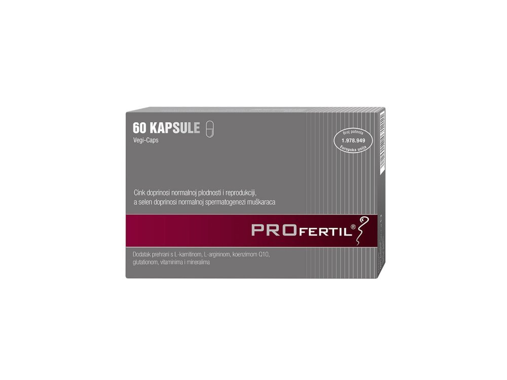PROfertil kapsule sadrže patentiranu kombinaciju sastojaka koji pružaju nutritivnu potporu muškoj plodnosti. Ovaj dodatak prehrani sadrži L-karnitin, L-arginin, koenzim Q10, glutation, vitamine i minerale koji zajedno potiču zdravu spermatogenezu i reproduktivnu funkciju.