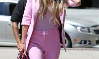 Upravo je najnovijim stajlingom dokazala da je ružičasta itekako dobar izbor i za dame iznad 50 ako se dobro kombinira, pa je moderne hlače 'uredskog tipa' - širih nogavica i s ukrasnim volanima na džepovima (Lola Casademunt) - uspješno spojila sa zanimljivim oversized sakoom šarenog uzorka (Magló), uskim tamnoplavim topom i cipelama na petu.