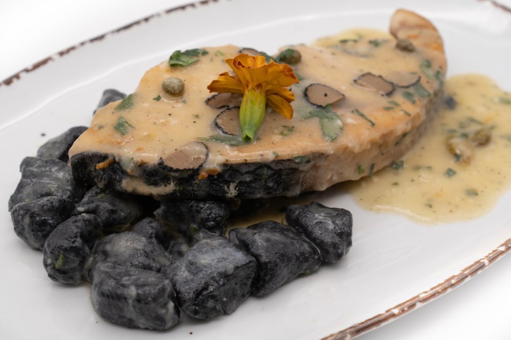 Sabljarka u umaku od tartufa s crnim njokama