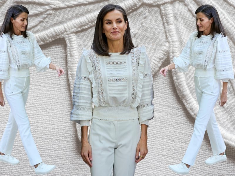 Na novom kraljevskom angažmanu osvanula je u romantičnoj bluzi s cvjetnim vezom i puf rukavima pojačanim manžetama, s potpisom danas ugaslog high street brenda Uterqüe. Ovom starom favoritu iz ormara pridružila je bijele hlače ravnih nogavica do gležnja, koje u trenu izdužuju noge i omogućuju nošenje ravne obuće bez žrtvovanja stila.