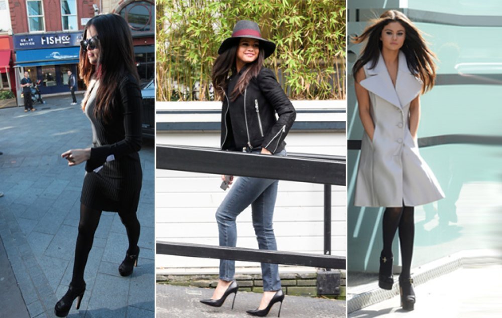 Selena se prvo prošetala Londonom u rokerskoj varijanti - uskim trapericama i bajkerskoj jakni - upotpunivši je šeširom i seksi štiklama, a zatim je mamila uzdahe u supermodernom sakou bez rukava i trendi sandalama na petu koje je dizajnirao Brian Atwood.