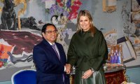 Za otvorenje događanja pod nazivom 'Beating the Bling, 12. izdanja Tjedna novca u Jaarbeursu u Utrechtu, kraljica Maxima, inače počasna predsjednica platforme Money Wise, vješto je spojila ženstvenu ljubičastu haljinu, kreaciju Victorije Beckham s kaputom u boji devine dlake, neutralnom nijansom koja ide uz apsolutno sve što imate u garderobi.