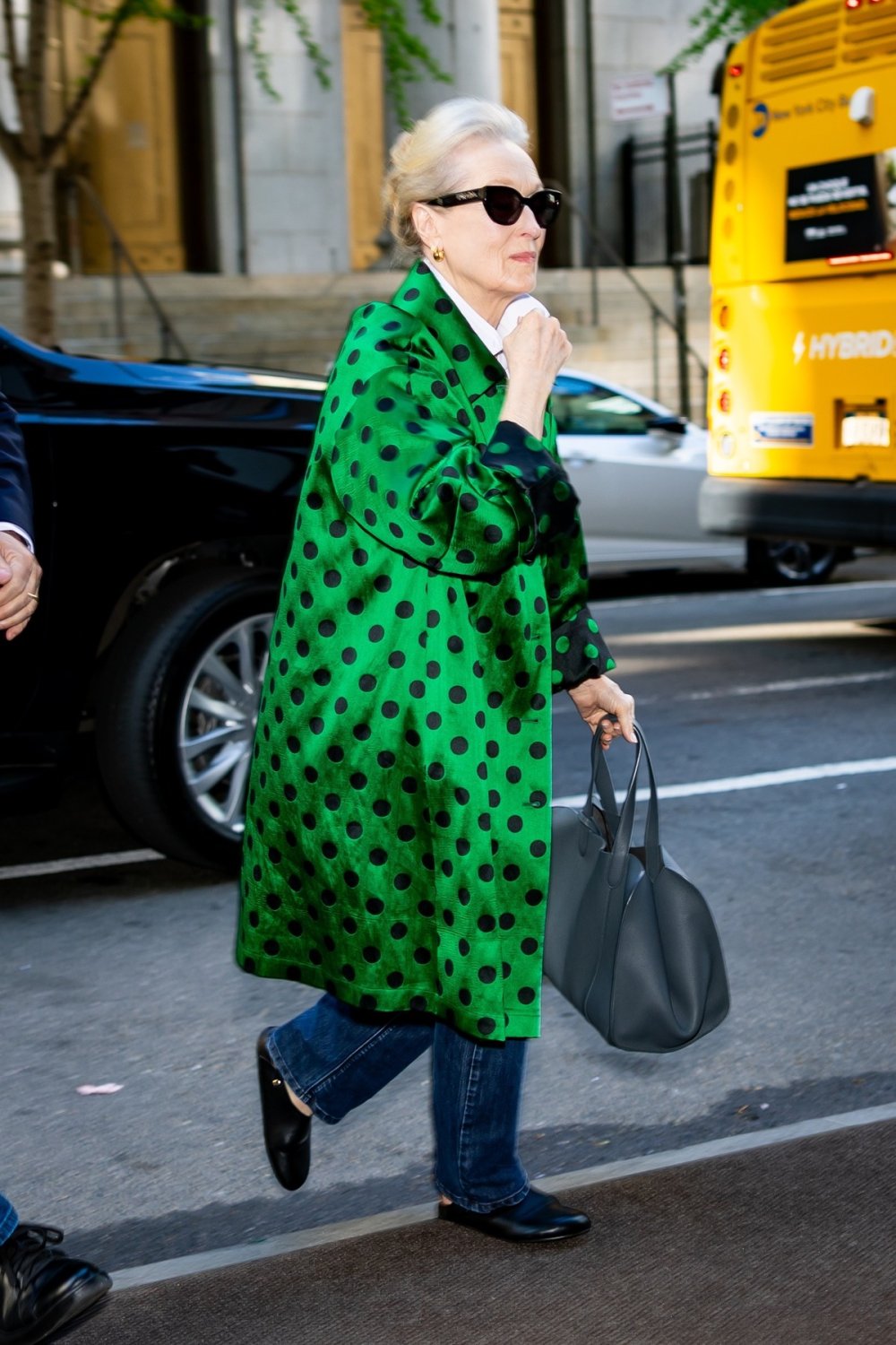 Meryl Streep ponovno je dokazala da joj ni u ležernim izdanjima ne nedostaje modne snage – u New Yorku je zablistala u upečatljivom kaputu s točkicama koji savršeno prati povratak ovog razigranog uzorka.
