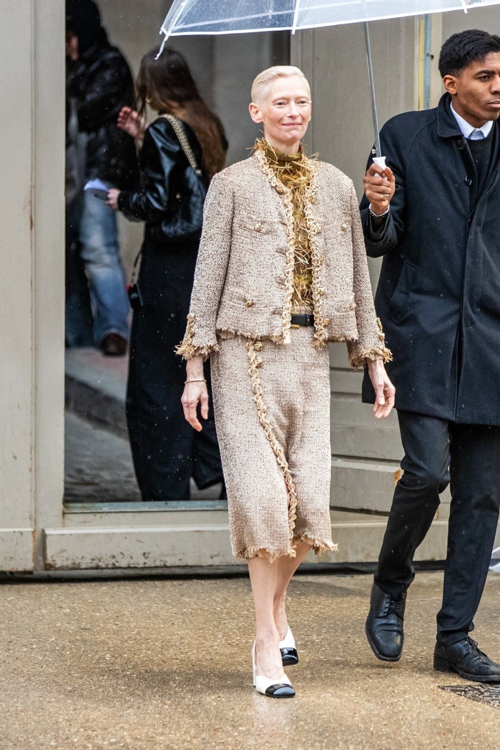 Za Chanel su bicolor cipele oduvijek bile zaštitni znak, posebice kultni slingback modeli. No ovaj put dolaze obnovljene. Caharlotte Casiraghi i Tilda Swinton nosile su verzije s manje izraženim dekolteom i geometrijskom špičastom petom. Na haute couture pisti za proljeće-ljeto 2026. Jonathan Anderson je dodao fantazijske potpetice u obliku gljiva i cvijeća – klasik s novim potpisom.