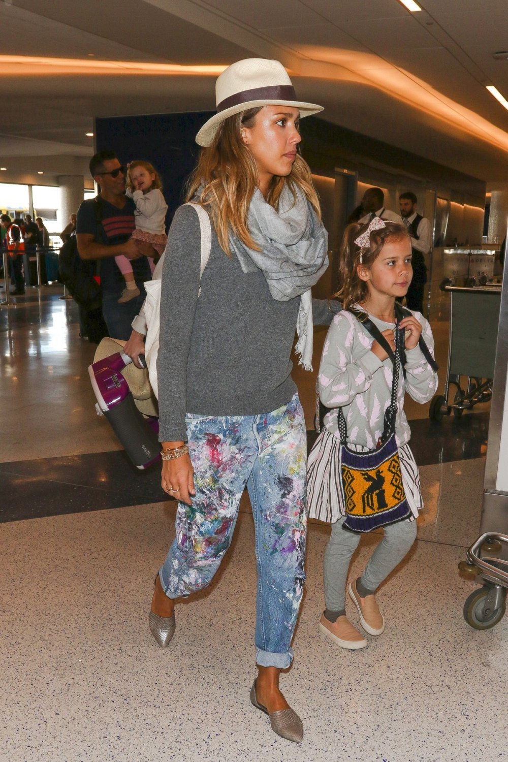 Da lijepa glumica ima urođen osjećaj za dobar stil, dokazuje svakim svojim pojavljivanjem u javnosti. Bez obzira na to radi li se o svečanim prigodama ili svakodnevnom izdanju, Jessica Alba rijetko kad griješi. Tako je i ovaj put uhvaćena u casual izdanju, boyfriend trapericama koje krase cvjetne aplikacije, srebrnim balerinkama i jednostavno sivoj vesti, a ležeran look upotpunila je velikim sivim šalom i neizbježnim šeširom.