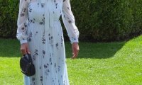 Nosila je maksi crnu košulja-haljinu kontrastnog uzorka i lepršavog kroja brenda Crida Milano, romantičnih kratkih rukava, laskavog remen i visoke kragne.
