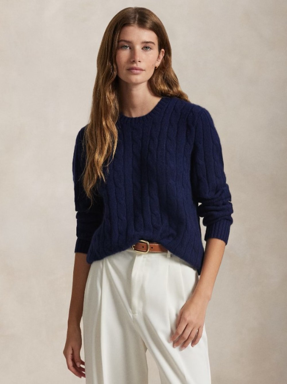 Od surovih atlantskih obala do filmskih setova, pleteni pulover prošao je put od praktične ribarske odjeće do luksuznog modnog komada. Posebno mjesto zauzima model s karakterističnim uzorkom cable knit – džemper s upletenim prugama koje podsjećaju na motiv užadi. Upravo je Polo Ralph Lauren zaslužan za njegovo moderno, profinjeno izdanje u najfinijem kašmiru.