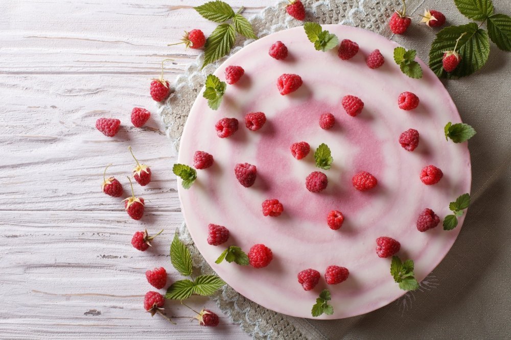Hrskava baza od keksa savršeno se sljubljuje sa osvježavajućom kremom od krem sira, šlaga i bijele čokolade. Za savršenu kombinaciju slatkog i kiselog, slatka krema prožeta je smrznutim malinama. Gotov kolač stavite na pladanj za posluživanje, ukrasite svježim malinama te pospite šećerom u prahu.