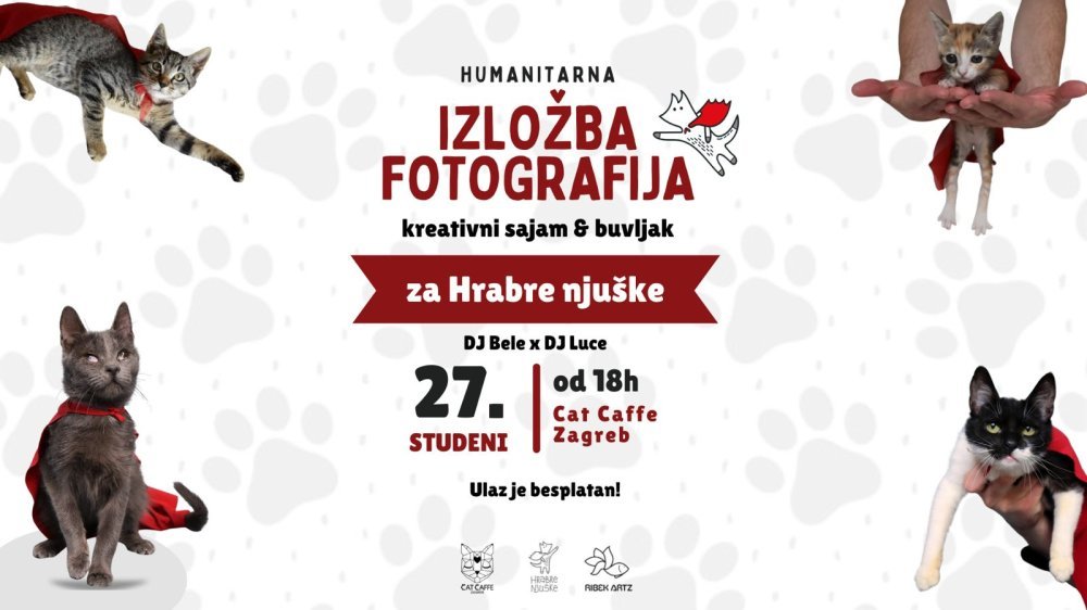 Ako ste ikad poželjeli spojiti umjetnost, glazbu, druženje i mačju karizmu, ali bez dlake na jeziku, četvrtak, 27. studenog, od 18 sati u Cat Caffeu Zagreb (Kušlanova 6) rezerviran je za vas. U toploj atmosferi omiljenog zagrebačkog mačjeg kutka, gdje su domaćini skloni dostojanstvenom ignoriranju ljudi, održava se humanitarni event za Udrugu Hrabre njuške, u organizaciji Ribek Artz