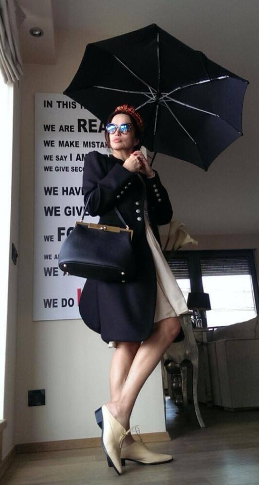 Senzualna kao i uvijek, Seve je unatoč odabiru cipela izgledala vrlo glamurozno, iako pozira s naočalama i otvorenim kišobranom u zatvorenom prostoru.