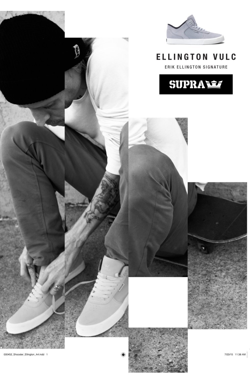 Ellington Vulc dostupan je u Shooster trgovinama po cijeni od 659 kn. Supra je nezavisan multinacionalan lifestyle brend inovativne obuće. Osnovali su ga Angel Cabada i Scott Bailey u Južnoj Kaliforniji 2006. godine. Inspirirana strašću, SUPRA spaja modu, glazbu, skate boarding, umjetnost i ulicu.