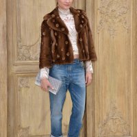 Prozirnu dolčevita-košulju s vezenim bijelim detaljima vješto je kombinirala s mini smeđom bundom s prišivenim detaljima cvjetova.