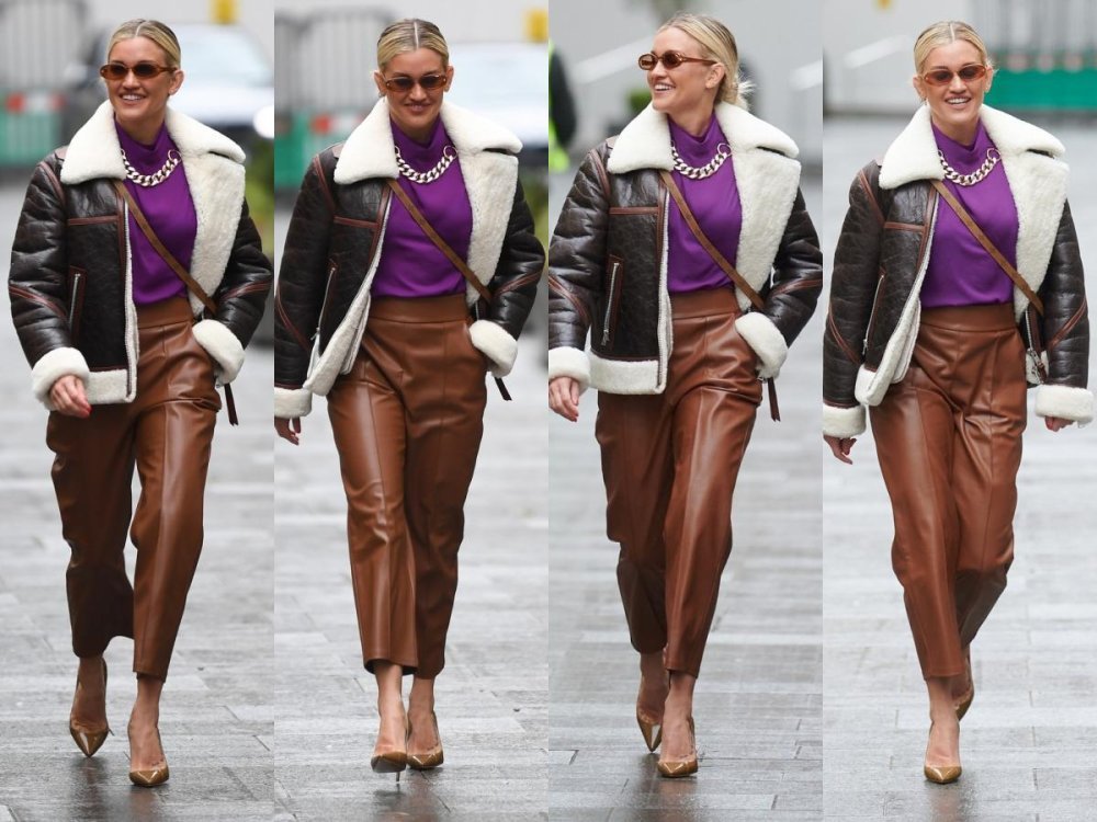 Da su odjevni komadi od kože uz pleteninu ove sezone sveprisutni na modnoj sceni već je dobro poznata činjenica, a poznata 39- godišnja Britanska ovog se puta odlučila za model kožnih hlača u boji konjaka, pridruživši im efektnu ljubičastu dolčevitu.