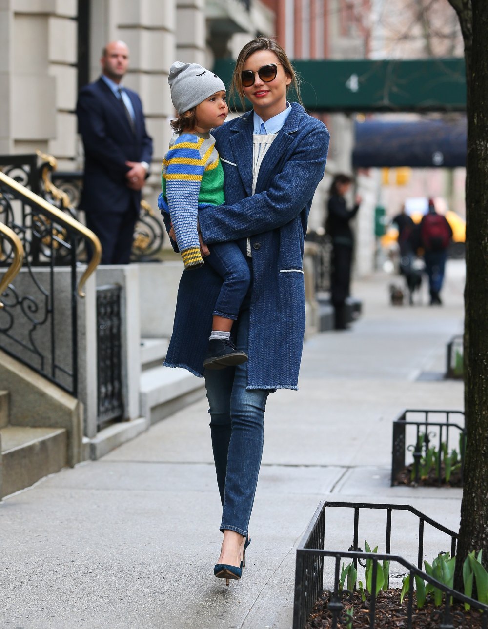 Sreća joj se vidi na licu, a u šetnji New Yorkom svi su se okretali za njom. U uskim trapericama i kaputu ispod kojeg je provirivala košulja, Miranda je izgledala kao da snima reklamu. Boje je uskladila sa sinovim stylingom.