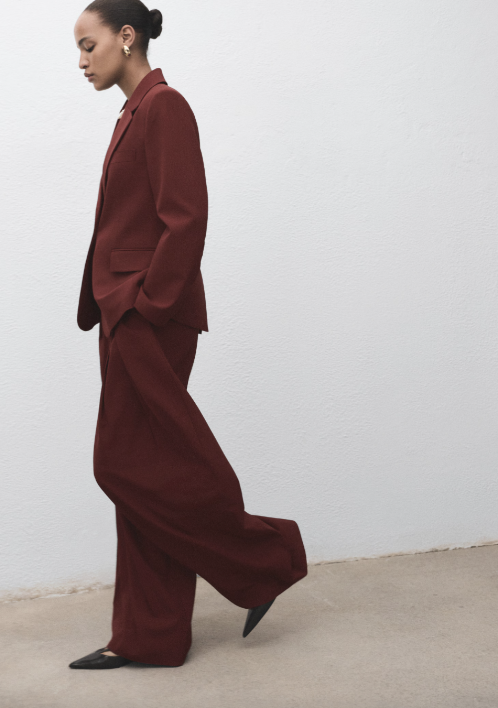 Sako ravnog kroja u toploj crvenoj nijansi (59,99 eura) i hlače širokih nogavica (39,99 eura) idealan su izbor za one koji žele nositi komade u boji, ali bez pretjerivanja. Ova nijansa odlično funkcionira s bordo, čokoladnosmeđom, crnom, pa čak i s animal printom. Ovaj jednostavan, ali efektan komplet zaslužuje svoje mjesto u svakom jesenskom ormaru.