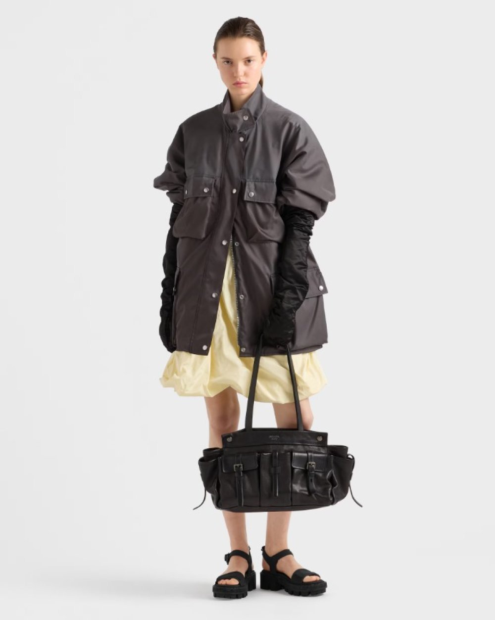 Ključni motiv torbe Route jest džep, jedan od najprepoznatljivijih elemenata Pradina dizajnerskog jezika. No ovdje on više nije tek detalj. Džep postaje struktura, temelj oblika i volumena, generativni princip koji se ponavlja i mijenja ovisno o modelu.