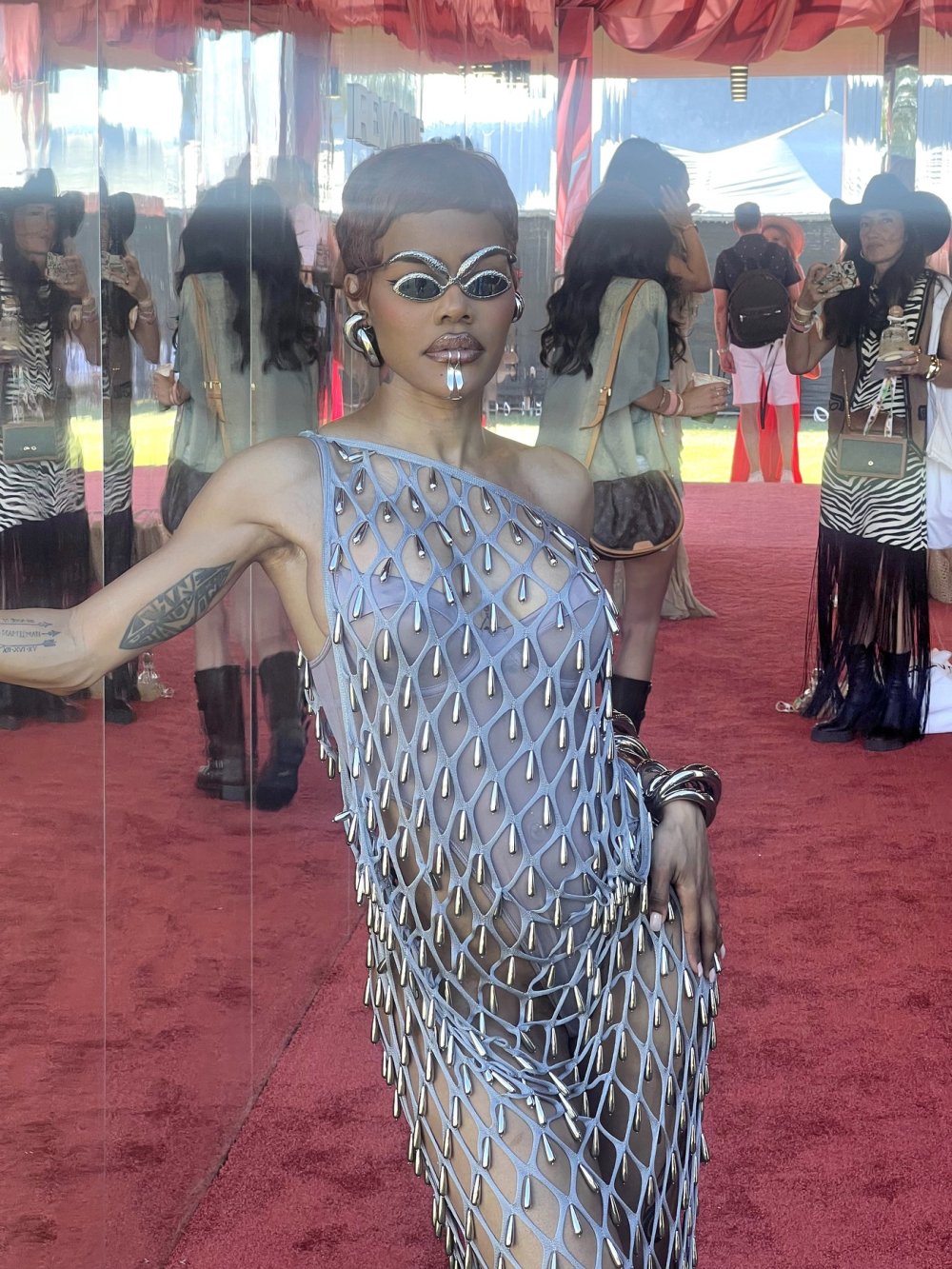 Teyana je festivalsku metalic temu zadržala od glave do pete pa je look zaokružila srebrnim sandalama s remenčićima i visokom petom, kao i slojevima masivnih srebrnih narukvica. U društvu zvijezda poput Emme Roberts i Gabriette Bechtel ponovno je potvrdila da na festivalima ne prati trendove, nego ih sama postavlja.