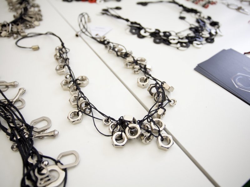 Originalne ogrlice Cyber Coffee Jasmine Sanader oduševile su nas zanimljivom uporabom vijaka, matica te metalnih dodataka koji u službi mode imaju jednu sasvim drugu ulogu. Ukrasiti, začiniti kombinaciju, učiniti vas jedinstvenima. Cijene su oko 700 kuna, a na popustu u nedjelju dobit ćete ih 30 posto jeftinije.