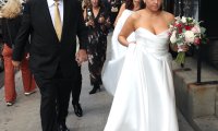 U bračnu luku, kako je otkrila, željela je uploviti u jedinstvenoj haljini, u duhu 60-ih, pa je spomenuti brend za nju kreirao babydoll haljinu od krepa i žakarda s naglašenim ramenima i krojenim rukavima ukrašenim manšetama. Detalj pussy bow ovratnika u gornjem dijelu upotpunio je njezin retro dizajn u stilu Twiggy.