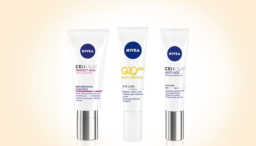 Nježna i lagana formula NIVEA Cellular Perfect Skin kreme za područje očiju s lumicinolom i ekstraktom magnolije trenutačno smanjuje podočnjake i sjene ispod očiju te umanjuje izgled natečenosti i izglađuje sitne bore. Učinkovita NIVEA Q10plus krema protiv bora za područje oko očiju sadrži učinkoviti koenzim Q10 i kreatin koji su zaslužni za smanjenje pojave podočnjaka i bora oko očiju te pomlađeni izgled kože.
