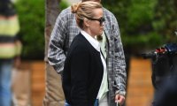 Moćan crni kaput brenda The Row, u vlasništvu modnih mogulica, blizanki Olsen, kombinirala je s udobnim bež hlačama i kariranom košuljom, a stajling je nadogradila šalom i sunčanim naočalama retro stila s potpisom brenda Luv Lou.
