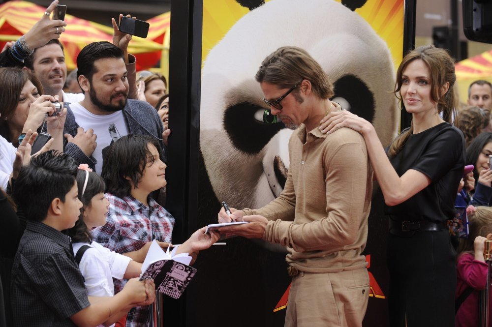 Brad Pitt sa svojom sijedom bradicom i masnom, zalizanom kosom, u ležernom izdanju u boji devine dlake od glave do pete, bio je tek sjena svojoj družici Angelini Jolie.