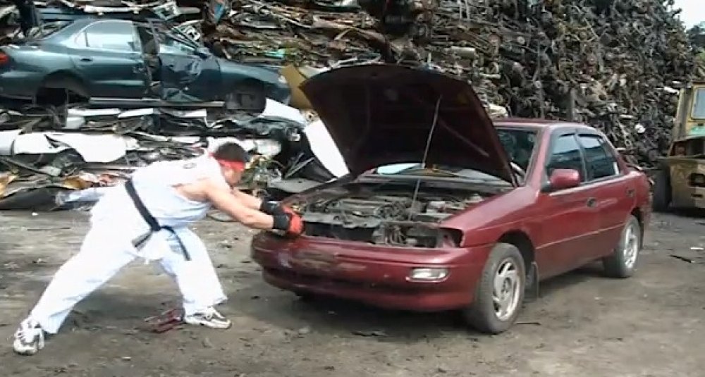 Nemamo pojma čime se nesretna limuzina zamjerila čovjeku u kimonu, no u dvoboju je izvukla deblji kraj.