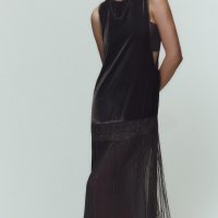 Zarin izbor kreće se od jednostavnijih, glatkih silueta do komada s devoré efektom i naglašenim detaljima poput metalnih ukrasa u struku, čime baršun dobiva razigran, ali i sofisticiran moment koji lako funkcionira uz salonke ili visoke čizme. U nekim tržištima posebno su istaknuti i dugi, poluprozirni crni modeli s četvrtastim izrezom u okviru ZW kolekcije, što potvrđuje fokus na večernju siluetu s couture prizvukom, ali u cjenovno pristupačnijem high street formatu.