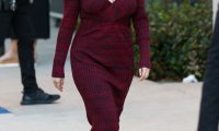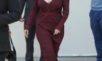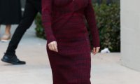 Zgodna 29-godišnja brineta briljirala je u efektnoj prugastoj haljini od pletiva koju potpisuje poznati brend Balmain, a u ovaj cool look odlično su se uklopile visoke kožne čizme (Reformation) i tamnoplavi kaput klasičnog kroja brenda Tod's.