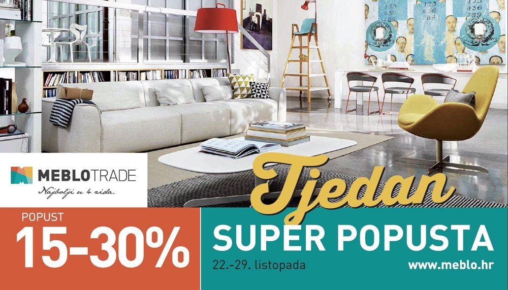 Blagovaonice, dnevni boravci, kuhinje po mjeri, spavaće sobe, ormari, dječje sobe, kreveti, madraci, vrtni namještaj, dekori i tapete, više od 10 000 artikala je na super popustu od 15 do 30% !