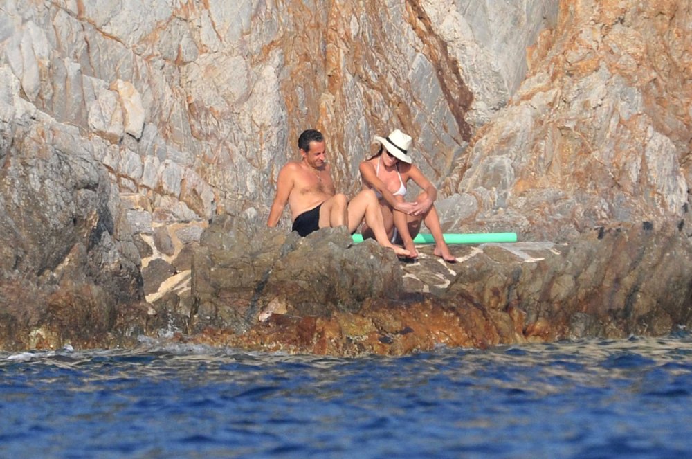 Nicolas Sarkozy djelovao je brižno; jednim je okom neprestano pazio je li Carla 'zbrinuta'. Torzo je pokazao samo iz daljine, a onda se i on od sunca zaštitio najsigurnijim rekvizitom: odjećom te je bio u tamnoj majici i kratkim hlačama.