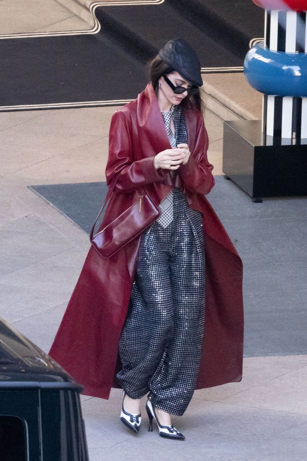Kožni kaput oversized kroja u raskošnoj boji doista podsjeća na luksuzne komade koje bi odobrila sama Miranda Priestly, u sjajnoj izvedbi Meryl Streep. Bordo nijansa trenutno dominira modnim pistama i ulicama, a Hathaway pokazuje zašto ova sofisticirana boja djeluje bogato, elegantno i iznimno laskavo.