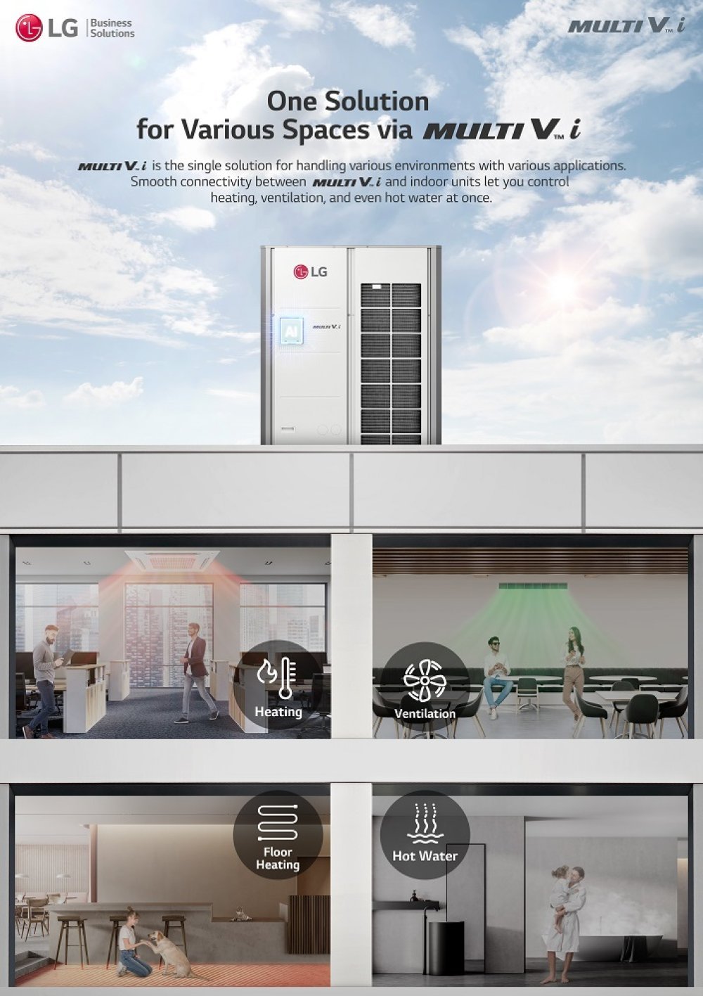 Štednja energije, fleksibilnost i niz drugih pametnih značajki, kao što je primjerice smanjenje buke, glavne su karakteristike novog LG-evog sustava Multi V i za grijanje i hlađenje zatvorenog prostora. Multi V i se temelji na učinkovitoj tehnologiji promjenjivog protoka radne tvari – VRF (Variable Refrigerant Flow) te predstavlja optimalno rješenje za sve vremenske uvjete i različite objekte.