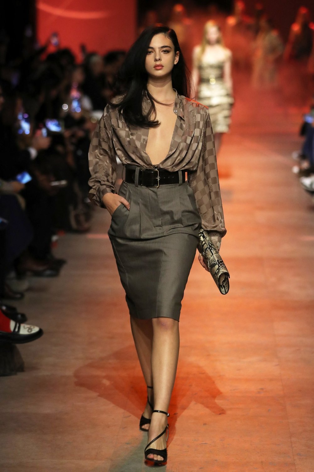 Na pisti je Deva zablistala u posebno senzualnoj i sofisticiranoj kombinaciji – nosila je fluidnu košulju na smeđe karirane uzorke, lagano raskopčanu i sparenu s visoko strukiranom pencil suknjom, koju je dodatno naglasio veliki, crni remen, apsolutni hit među modnim dodacima ove sezone.