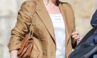 Zlatne gumbiće sa sakoa uskladila je sa zlatnim nakitom kojim se ukrasila, a smeđem je odijelu pridodala i kožnu torbu u boji konjaka. Rođena Dubrovkinja outfit je obogatila i velikim sunčanim naočalama, neizostavnim modnim dodatkom za sunčanih dana.