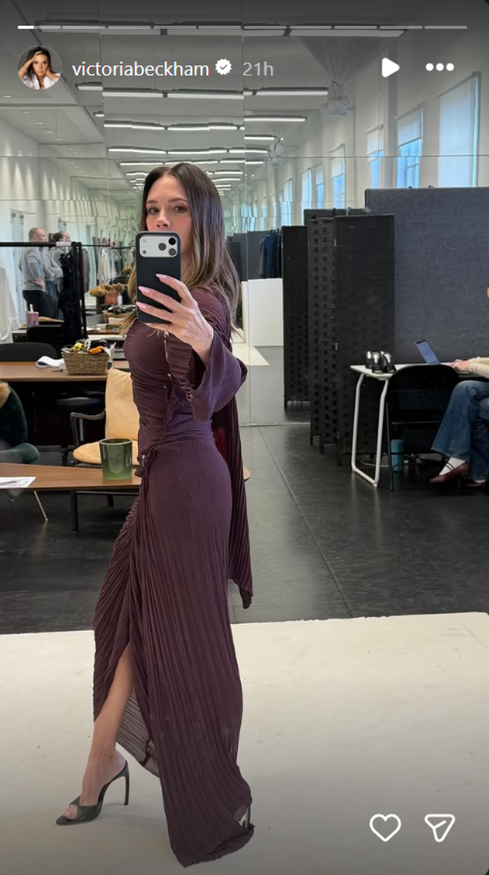 Victoria Beckham pokazala je svoje dizajnerske vještine pozirajući u haljini boje šumskog voća, spojene nizom ziherica. Zvijezda se na fotografijama objavljenima na društvenim mrežama činila potpuno posvećenom poslu u londonskom studiju iz kojeg vodi svoj modni brend.