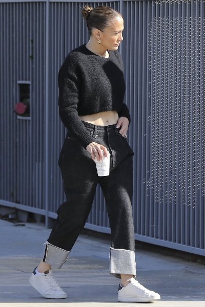 Jennifer Lopez ima vrlo užurban raspored, no usprkos tome baš uvijek uspijeva izgledati nevjerojatno dobro. Vikend je bio ispunjen roditeljskim dužnostima, a za jurnjavu Los Angelesom J.Lo je odabrala stajling koji je u punom sjaju pokazao njezine slavne obline. 54-godišnja pjevačica, koja se za top formu oslanja na fitness trenere Tracy Anderson i Davida Kirscha, u ruci je držala šalicu kave, a u prvom planu se našla modna kombinacija koju tako dobro ne bi nosile ni njezine puno mlađe kolegice. Crne traperice baggy stila i crni kratki džemper s natpisom na leđima: 'Zbog tvojih krila se osjećam slobodno', savršeno su istaknuli vitak struk i trbušnjake, a casual stajling je upotpunila tenisicama.