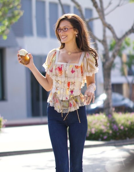 Američka 'it' djevojka posljednja je dama iz slavnom nizu koja se može pohvaliti mirisom s vlastitim potpisom. Parfem Orebella svečano je predstavila u Los Angelesu, odjevena u vintage haljinu Zuhaira Murada, da bi dan kasnije pozirala ispred velikog plakata svoje kampanje za miris. Navedeno je učinila u još jednom stajlingu inspiriranom trendovima s početkom milenija - kombinaciji traperica zvonolikih nogavica i prerijskog topića. Potonji komad korzetnog kroja još jedan je vintage ulov Belle Hadid, a svoju premijeru imao je u kolekciji modne kuće Valentino za sezonu proljeće/ljeto 2004. godine.