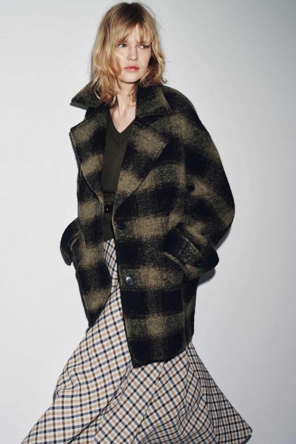Zarin kaput načinjen od ugodne mješavine (73 posto certificirana vuna, 21 posto reciklirani poliester) u trendi tonovima maslinastozelene i crne krupnog kockastog uzorka definitivno je jedan od najpoželjnijih komada za sve fashionistice, osobito one koje cijene pomalo avangardniji stil.