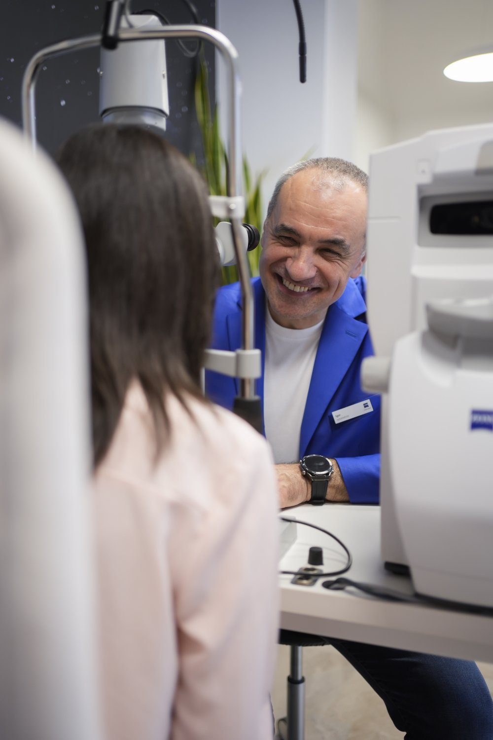 Nakon što je optometristica i stilistica za naočale uzela sve bitne podatke o nama, slijedi formalniji dio pregleda. Ulazimo u futurističku ordinaciju i stručnjakinja izrađuje preciznu mapu naših očiju na uređaju ZEISS i.Profiler Plus, visokokvalificiranom ZEISS uređaju koji objektivno mjeri dioptriju te zakrivljenost rožnice.