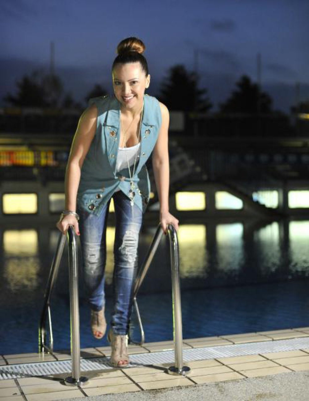 ŽanamariLalić se zna utegnuti u zavodljive krpice, a uvjerljivo zna i pozirati. Na otvaranju gradskog bazena u Bjelovaru pojavila se u uskim poderanim trapericama uz koje su njezin seksipil naglasile trendi štikle. Uz to je nosila laganu sivu košuljicu bez rukava s metalnim rupama.