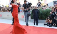 Plavokosa ljepotica, koja se vratila na crveni tepih Venecijanskog festivala nakon četiri godine izbivanja (u međuvremenu je rodila sina Davida), zasjala je u raskošnoj kreaciji koju potpisuje poznata talijanska dizajnerica Elisabetta Franchi.