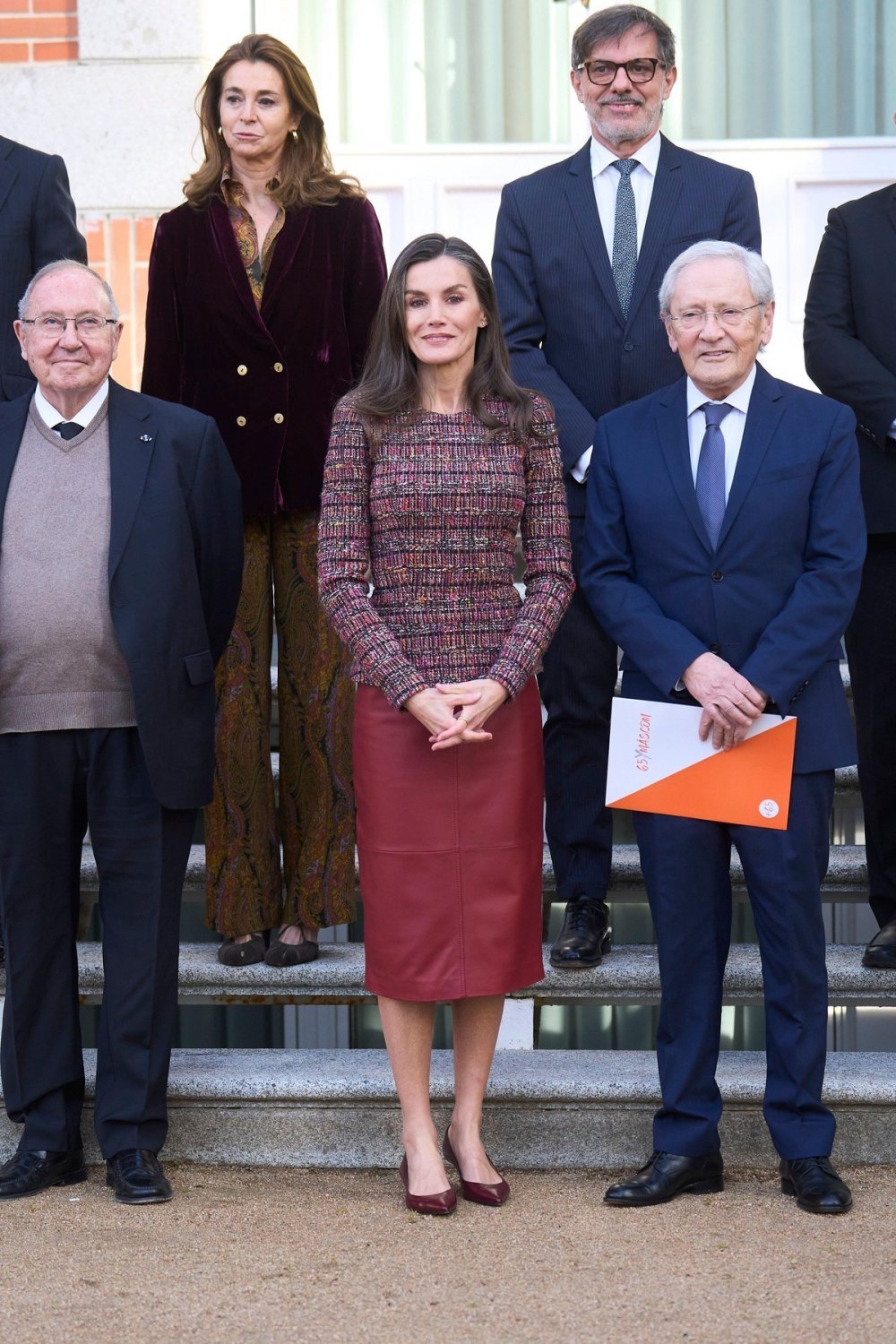 Španjolska kraljica bordo kožnu suknju nosila je uz bijelu bluzu Caroline Herrere i salonke klasične linije, potvrdivši da ovakav komad može funkcionirati i u strogo službenim prilikama. Nekoliko godina kasnije istu suknju prigrlila je i Máxima od Nizozemske, dodatno učvrstivši njezin status u kraljevskim ormarima. Njezina je formula bila jednostavna – kombiniranje s komadima u istoj kolorističkoj paleti, od plisiranih modela do kraćih, pripijenih krojeva.