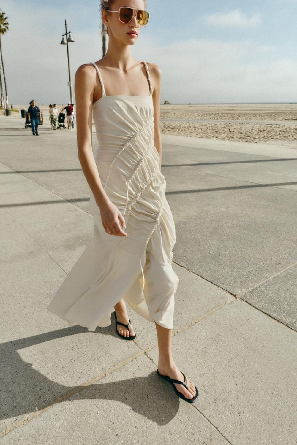 Minimalistički stil dopušta brojne kombinacije pa je možemo spojiti i s npr. jednostavnim crnim japankama i zlatnim naočalama aviatoricama. U svakom slučaju ova haljina šalje jasnu poruku: ženstvenost nikad ne izlazi iz mode.