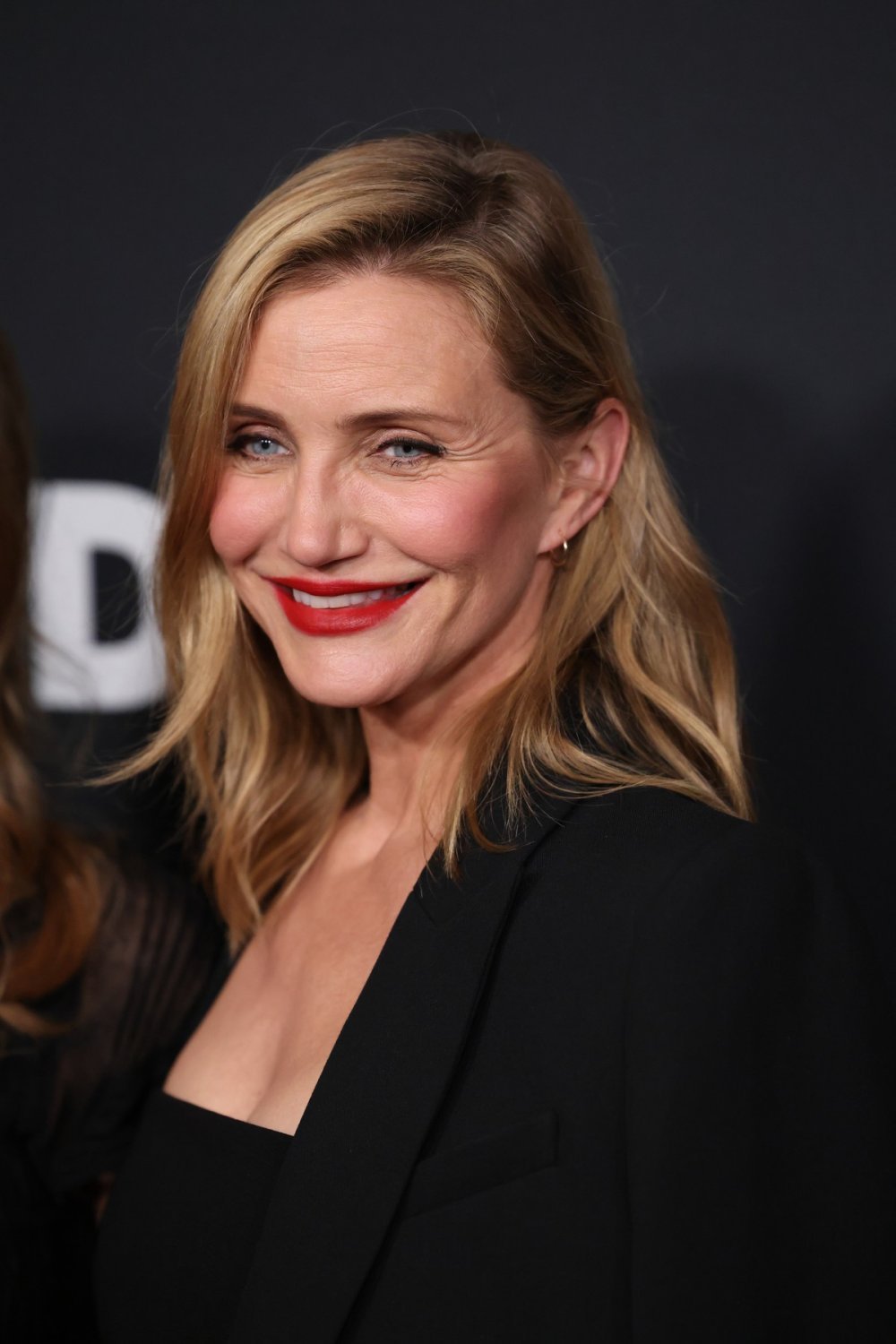 Na svečanost je Cameron Diaz stigla u pratnji svoje dugogodišnje prijateljice i suradnice, vizažistice Gucci Westman, koja je te večeri proglašena najboljom 'red carpet' vizažisticom godine. Glumica se odlučila za strogo krojen crni sako prebačen preko ramena, koji je uparila s hlačama istog tona i jednostavnim topom bez naramenica. No, ono što je njezino izdanje učinilo apsolutno besprijekornim bio je odabir jarkocrvenog ruža koji je pružio dramatičan i sofisticiran kontrast tamnoj odjeći.