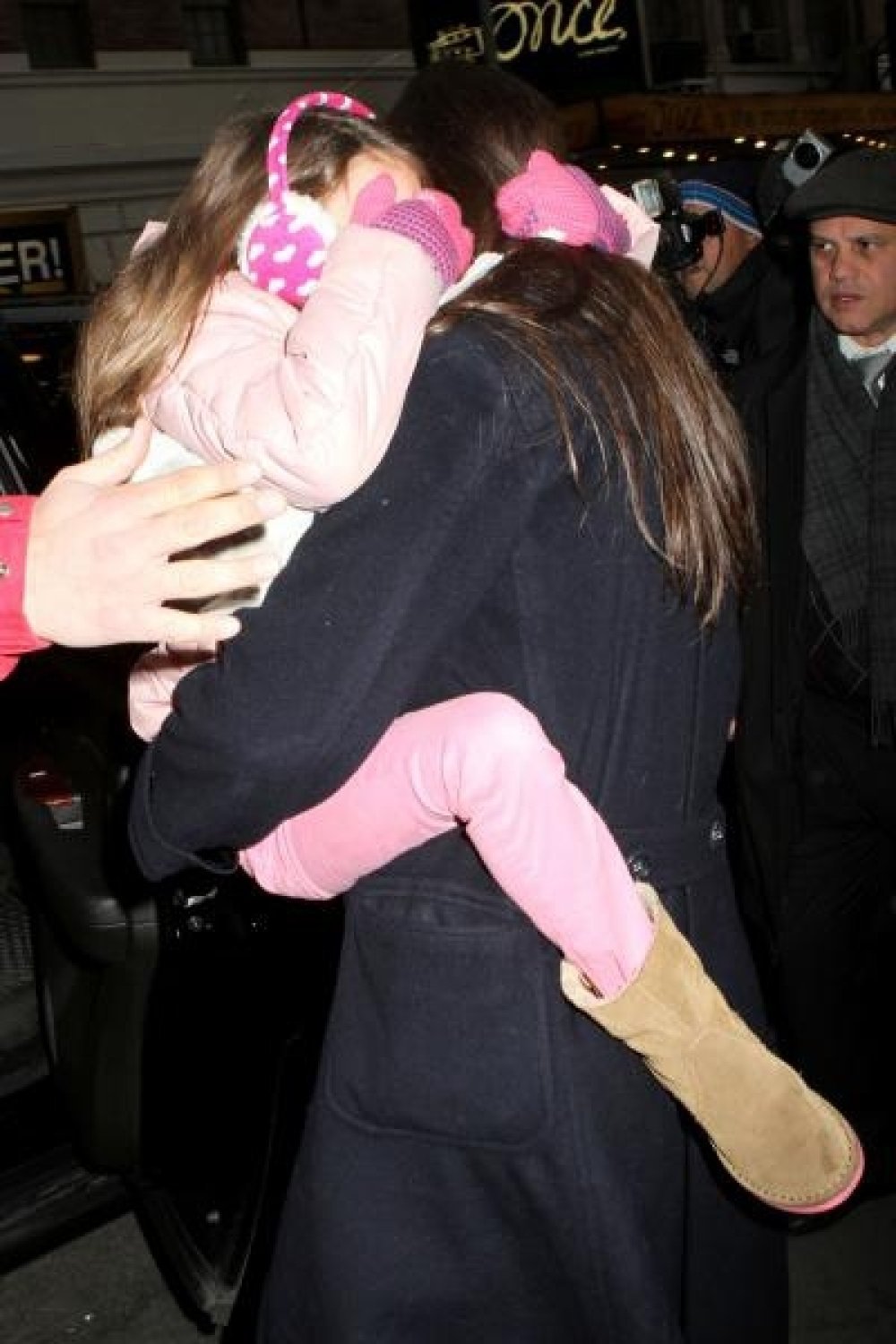 Isprva su šetale držeći se za ruke, sve dok šestogodišnjoj djevojčici nisu zasmetali paparazzi pa ju je Katie odlučila nositi. Suri je oči prekrila rukama, čvrsto zagrlila mamu i plakala pred okupljenim fotografima koji su ih pratili u stopu.